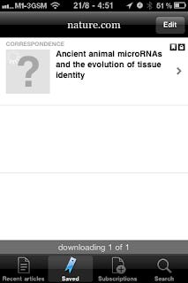 Browse by title, DisciplineArticle, Review, Editorial, Data range, LanguageNoneNoneEmailGo to full site first NA Nature (iPhone app)Same as default desktop? NoneNoneNoneNoneEmail, Connotea, Facebook, Google reader, Instapaper,
