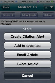 But with social media on the rise how about tweeting or liking stuff? Scopus iPhone app allows you to tweet the article which you are reading which is nice.