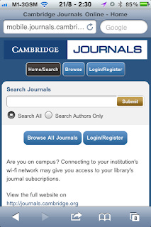 Browser pairingNo true back button. arXiv (iPhone app)Alltitle, author, abstract, idNoneNoneability to browse by author from authorNone?FreeRotation yes Cambridge Journal Online