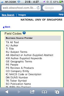 Ebscohost mobile web version was particularly odd, there was a field codes link (see above) which just linked to a page on field codes you could use. I mean literally it was a help page on that (see below).