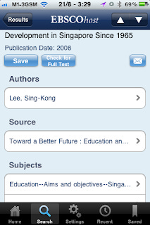 (mobile web)AllAuthorNoneNoneNoneEmailUsual web method e.g EzproxyNA Ebscohost (iPhone app)Same as default desktop? NoneFull text, Peer Reviewed, Autocomplete, Publication