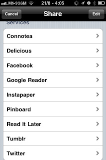 But the Nature app probably takes the cake in terms of social media intergretion you can push to Connotea, Facebook, Google reader, Instapaper, Pinboard, Readitlater, Tumbler, Twitter, Papers!