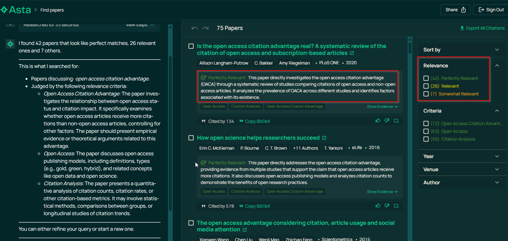 You might be wondering why I am harping on this. After all, Semantic Scholar has many features that are clearly AI-powered, such as “TLDR”, “Ask this paper”, Citation sentiment (e.g., “Highly Influential Citations”), Research Feeds.