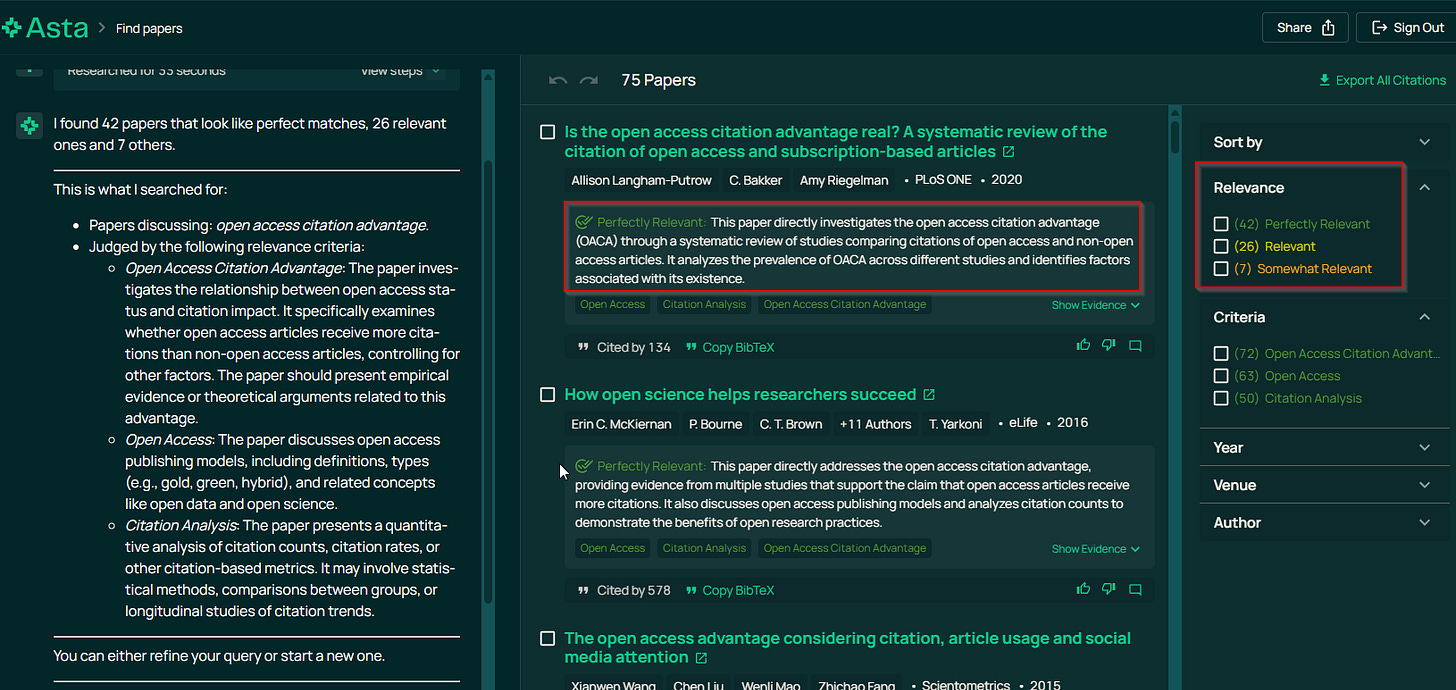 Google Scholar Labs, AI2 Paper Finder (now Asta) uses this type of approach - it uses an LLM to do query intent parsing, rank results and even generate a rationale explaining why each paper was ranked where it was. You’re still ultimately getting a ranked list, but now there’s AI-generated explanatory text attached to each result.