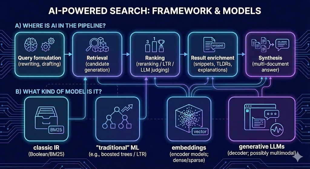 So the next time you see an “AI-powered search engine,” maybe the first question shouldn’t be “Is this AI?” but rather “What kind of AI, “where and how it is used in the pipeline”.