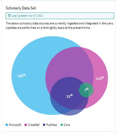 Lens.org visualization of overlaps between their major sources of Scholarly work -